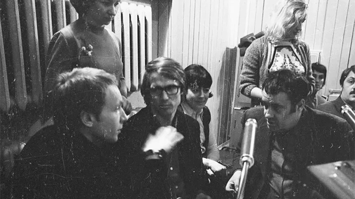 Студенты ВГИКа — будущие кинорежиссёры Вениамин Дорман, Григорий Аронов и Эльдар Рязанов, 1948 год. Фото: ryazanovmuseum.ru