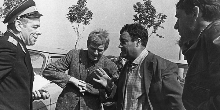 Георгий Жжёнов, Иннокентий Смоктуновский и Эльдар Рязанов на съёмках фильма "Берегись автомобиля", 1966 год. Фото: Kinorium.ru