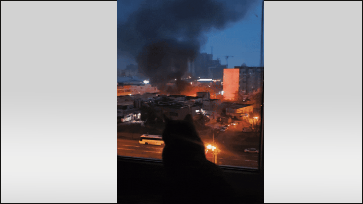 Кот, наблюдающий за уничтожением военных объектов в Киеве. Видео: Colonelcassad