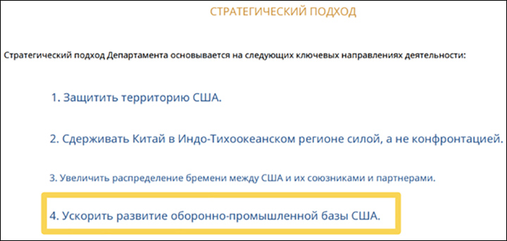 Полковник называет документ "очень примечательным". В нём, допустим, американцы не стесняются того, чего сторонятся наши деятели – в частности самоанализа, когда разработчики Стратегии констатируют наличие проблем и прорех в промышленности.