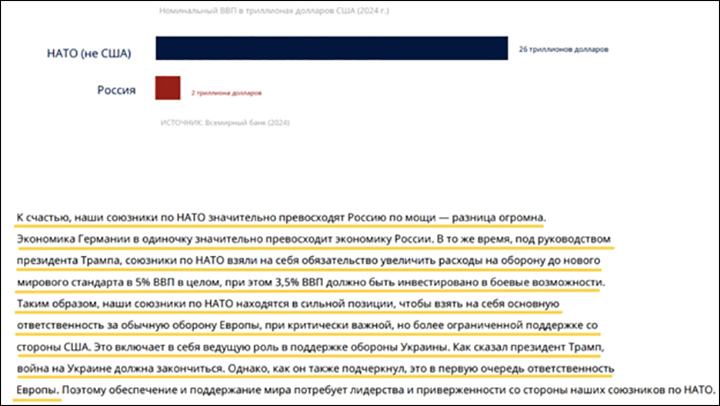 Что, кстати, очень хорошо объясняет нынешнюю политику Трампа, поскольку одна из задач по урегулированию (войны) на Украине – недопущение дальнейшей интеграции России в китайские интересы. Поэтому в этом смысле прагматизм достаточно привязанный к общей политике США. В документе много говорится о том, что задача не противостояния, не мировой единоличной гегемонии США, а мир через позицию силы. Ну что ж, можно только позавидовать – в том смысле, что этот принцип и мы должны брать себе на вооружение,