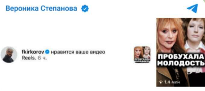 В своём Telegram-канале психолог Степанова сообщила, что Киркоров поставил лайк под её видео с разбором личности Пугачевой.