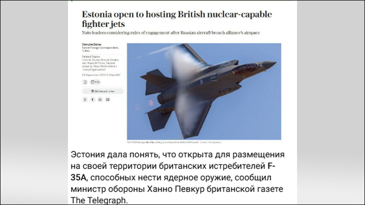 Эстония предлагает свою территорию под размещение ядерного оружия средств его доставки не первый год. Скриншот: ТГ-канал "Военный Осведомитель"