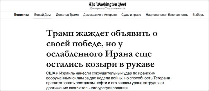Иран ещё рано списывать со счетов, это признают сами американцы. Скрин сайта The Washington Post
