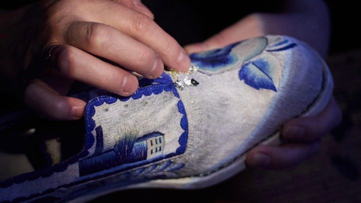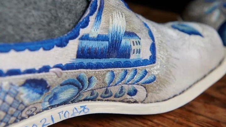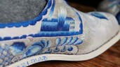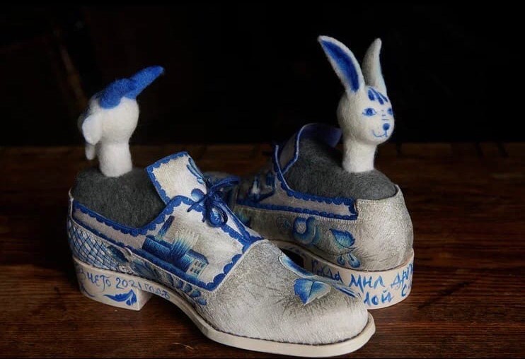 - Первые туфли – это некая ирония… Гжель, лубочные пословицы, мягкие войлочные (вместо жёстких деревянных) формодержатели – это составляющие, которые говорят об эфемерности правил и законов, о том, что именно русский лубок и шерсть (из которой делали валенки: «с умного по шерстинке – дураку на валенки») подчеркивают «русскость» произведения, отношение автора к миру.