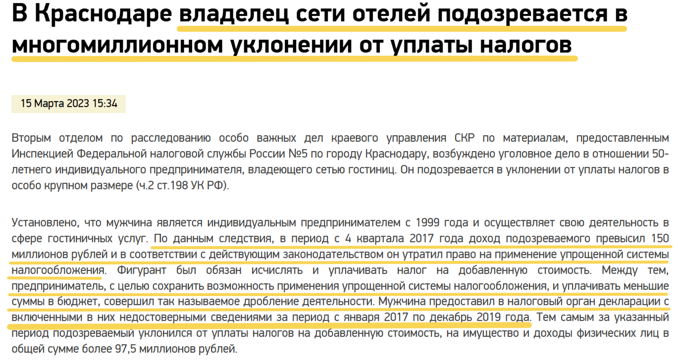 А в середине марта 2023-го к Марченко впервые всерьёз нагрянули следователи СКР вместе с оперативниками ФСБ: по материалам налоговой проверки у него выявили неуплату налогов на 97,5 млн.