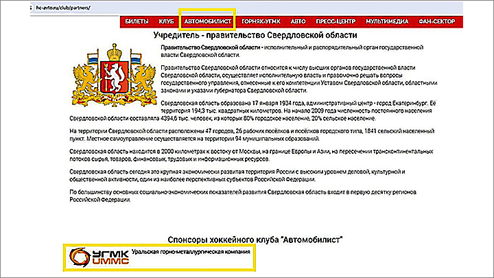 В списке спонсоров "Автомобилиста" УГМК на первом месте. Скриншот: интернет-сайт hc-avto.ru