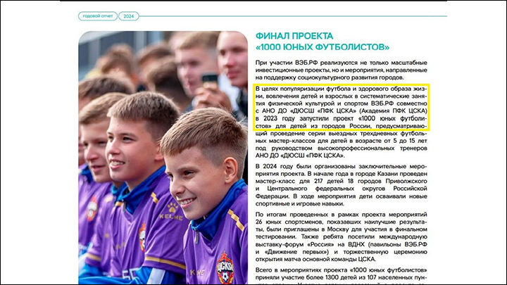 В годовом отчёте за 2024-й ВЭБ.РФ сотрудничество с ЦСКА указано, но есть нюанс. Скриншот: вэб.рф