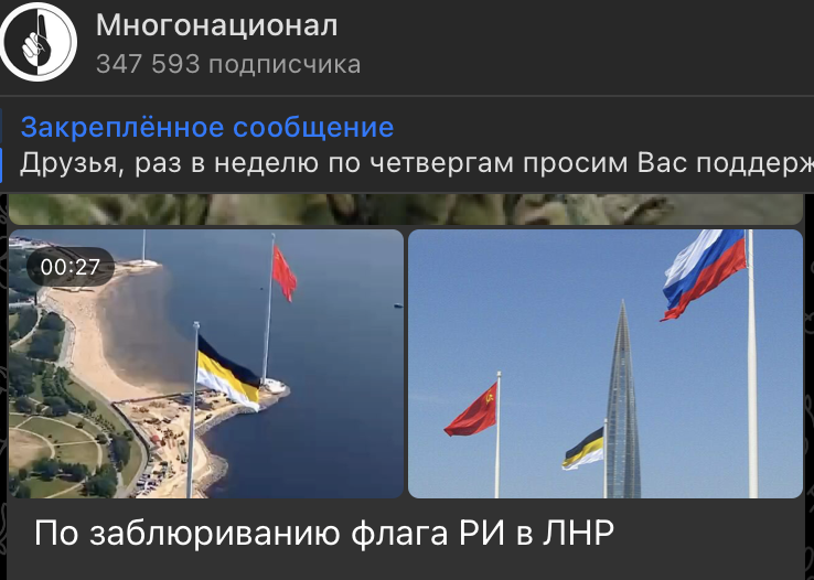 Авторы телеграм-канала "Многонационал" сообщили, что им неофициально пояснили, что Имперский флаг в репортажах о военных теперь замазывают по указанию департамента информации и массовых коммуникаций Министерства обороны. Однако они отметили, что эта информация требует проверки.