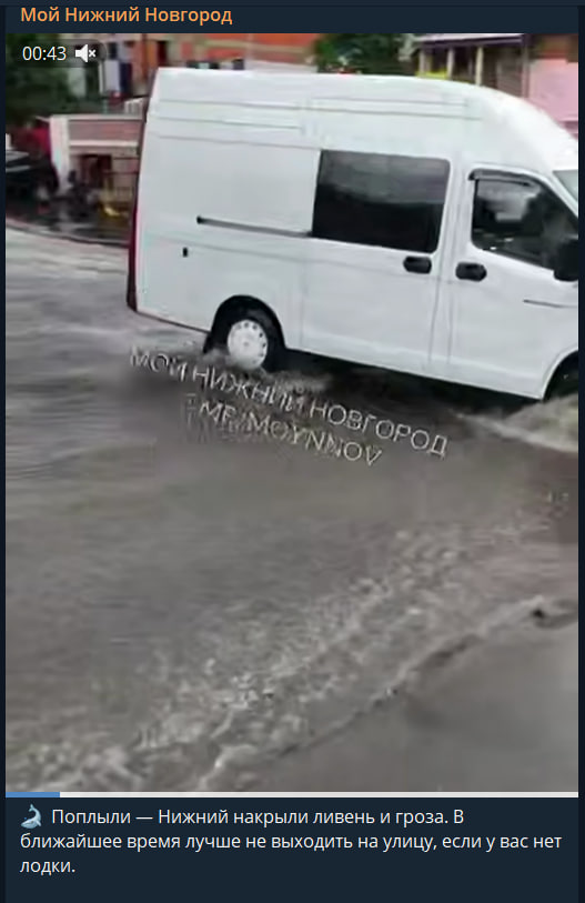 Нижний Новгород буквально уходит под воду: 4 августа на город обрушился мощный ливень, который парализовал движение и затопил несколько улиц. Особенно пострадали улица Семашко и район Дворца спорта, где вода стоит по колено, а машины буквально плывут по дорогам.